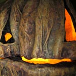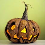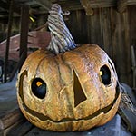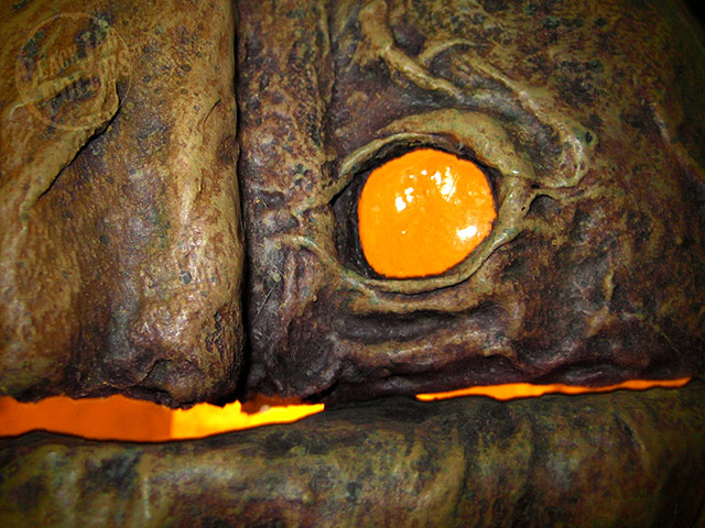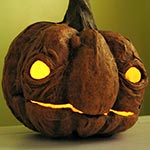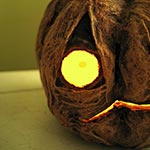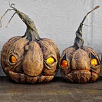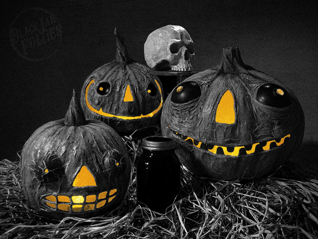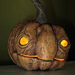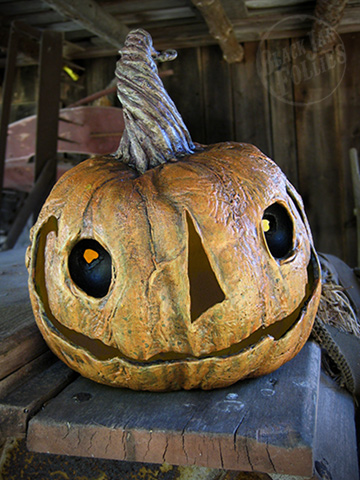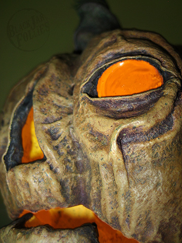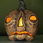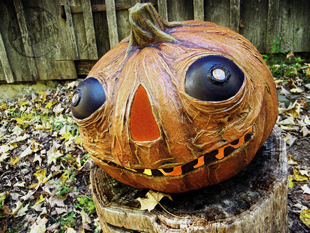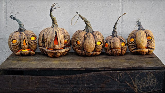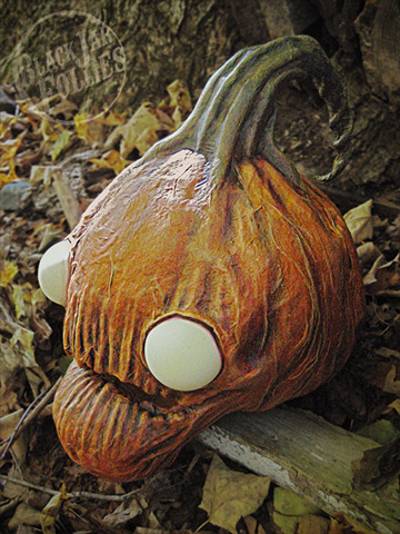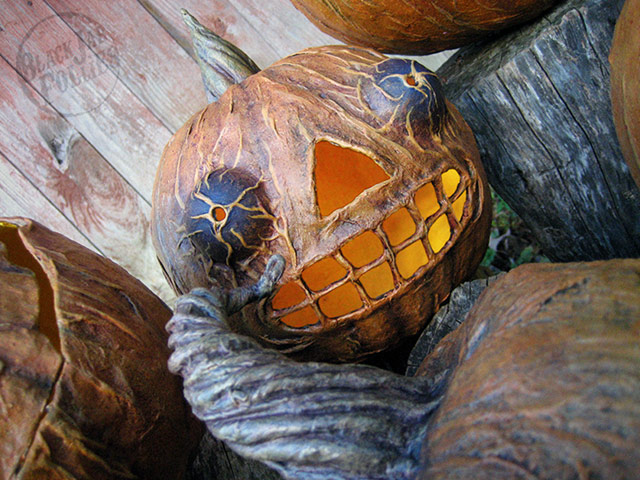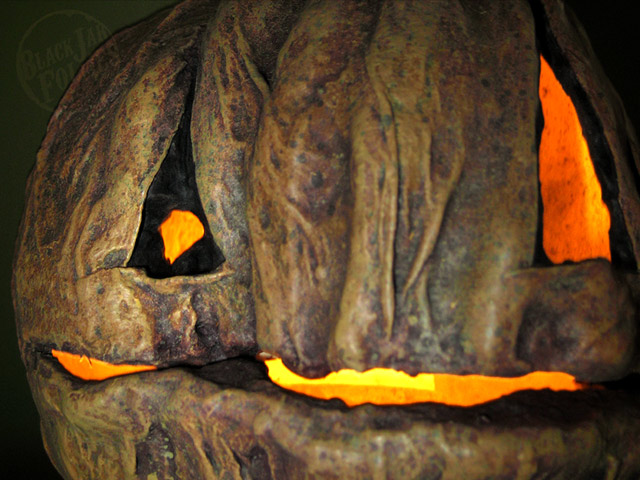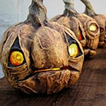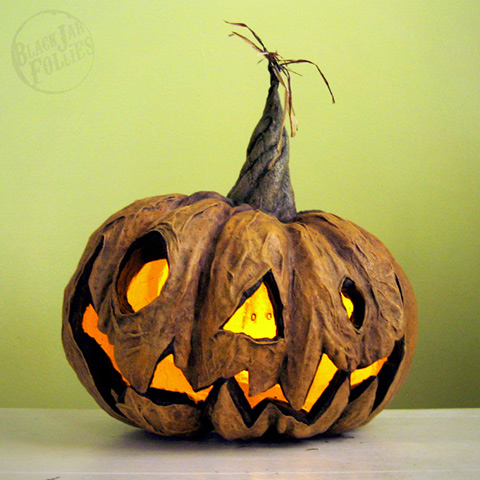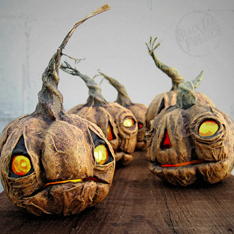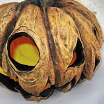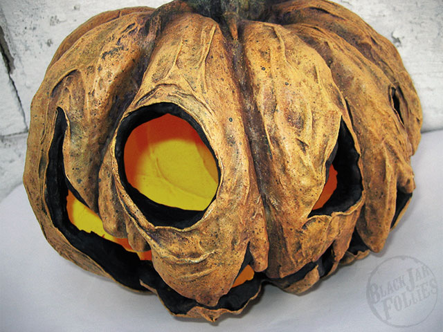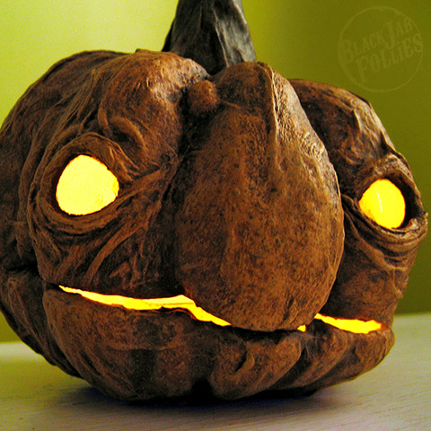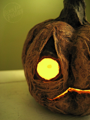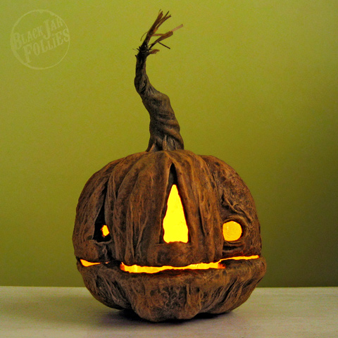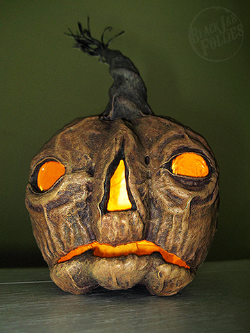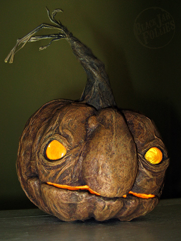 I started an ongoing jack-o'-lantern project a few years back, creating paper mache "desiccated" pumpkins with faces carved into them. JOLs. I've been obsessed with perfecting this odd rotting aesthetic ever since.